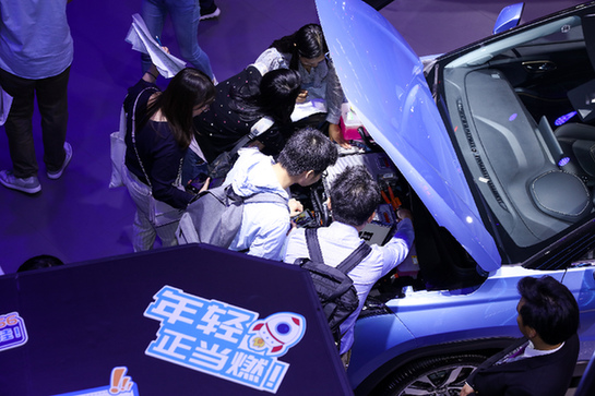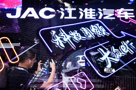 江淮汽車展臺(tái)人頭攢動(dòng)