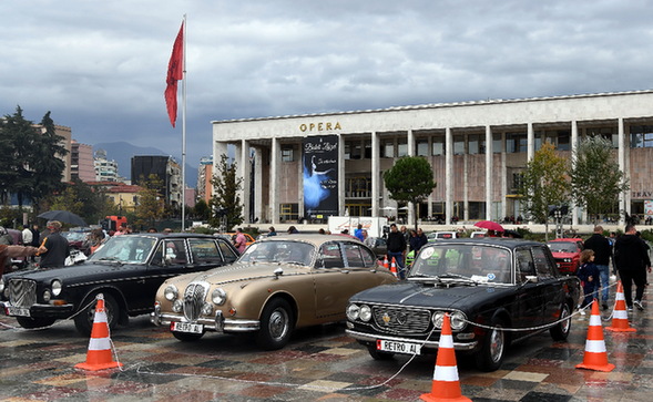 ???? 為期兩天的“懷舊”車展11月3日在阿爾巴尼亞首都地拉那落下帷幕,共有包括老爺車在內(nèi)的200余輛車向公眾展出。圖為人們?cè)凇皯雅f”車展上參觀。記者 張立云 攝