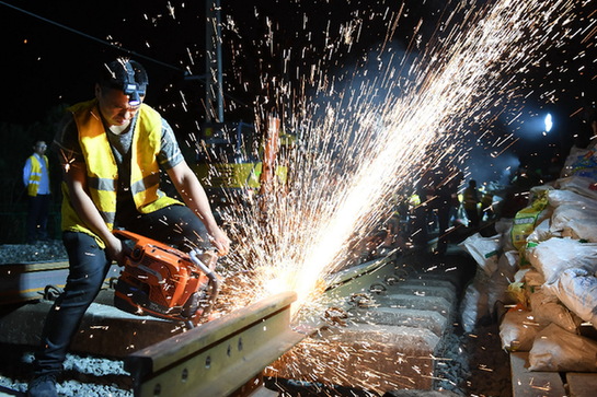 今年10月,福平鐵路聯絡線接入福州站大撥接封鎖施工順利完成,工人在福平鐵路聯絡線接入福州站大撥接封鎖施工現場作業(yè)。福州至平潭的福平鐵路是國家“八縱八橫”高速鐵路網中合福高鐵的重要延伸,對拉動地方經濟發(fā)展具有重要意義。記者 林善傳 攝