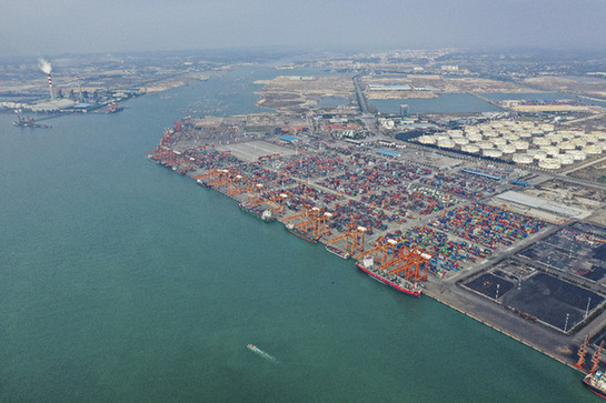 中國(guó)(廣西)自由貿(mào)易試驗(yàn)區(qū)欽州港片區(qū)集裝箱碼頭。記者 曹祎銘 攝
