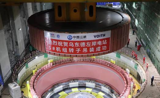 近日,由中國能建葛洲壩集團(tuán)承擔(dān)安裝施工任務(wù)的烏東德水電站左岸地下電站5號機(jī)組轉(zhuǎn)子成功吊裝。資料照片