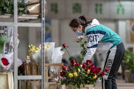 2月26日,當(dāng)?shù)厥忻裨诙纺匣ɑ芙灰资袌?chǎng)選購鮮花。隨著各地花店陸續(xù)開門營(yíng)業(yè),物流逐漸好轉(zhuǎn),亞洲最大的鮮切花交易市場(chǎng)——昆明斗南花卉交易市場(chǎng)逐步恢復(fù)正常營(yíng)業(yè)。記者 江文耀 攝