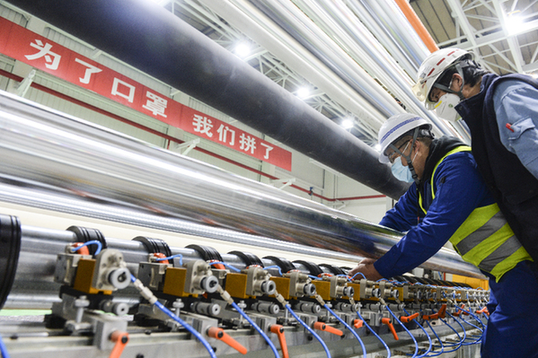 “國家需要什么就生產(chǎn)什么,人民期待什么就奉獻什么。一切為了國家的需要和人民的期待。這是中國石化集團公司黨組在疫情防控阻擊戰(zhàn)中確定的原則?!眳未簌i告訴記者,口罩作為抗擊疫情最重要的防護用品,隨著疫情突發(fā)需求量大增。特別是用以生產(chǎn)口罩的熔噴布,國內(nèi)產(chǎn)能原本不足,新增產(chǎn)能周期長、投資大,趕不上下游口罩機生產(chǎn)線的增加,一時間熔噴布價格飛漲且供不應(yīng)求,成為產(chǎn)業(yè)鏈條的“瓶頸”。