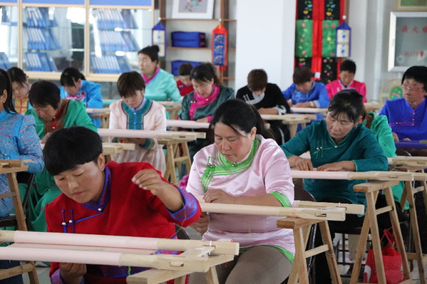 興安盟科右中旗刺繡扶貧車間里,包括貧困人口在內(nèi)的農(nóng)牧民婦女們在進行刺繡創(chuàng)作??朴抑衅鞂⒋汤C打造為扶貧產(chǎn)業(yè),目前參與人數(shù)超過2萬人,其中貧困人口約3000人,貧困人口年均增收超2000元。 記者 王靖 攝