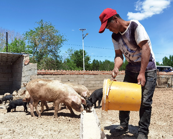 扎賚特旗脫貧戶包哈敦巴拉在喂豬,經(jīng)過精準扶貧,他已成了村里的養(yǎng)豬大戶。2019年,通過勤奮養(yǎng)豬、護林,他的年收入超過15000元。記者 任軍川 攝