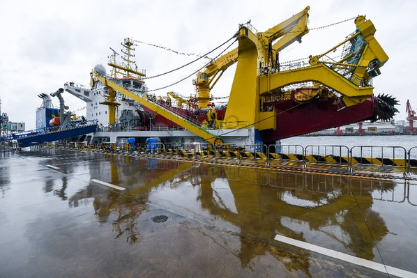 我國(guó)自主研發(fā)的重型自航絞吸船“天鯤號(hào)”亮相2020中國(guó)海洋經(jīng)濟(jì)博覽會(huì)。記者 毛思倩 攝