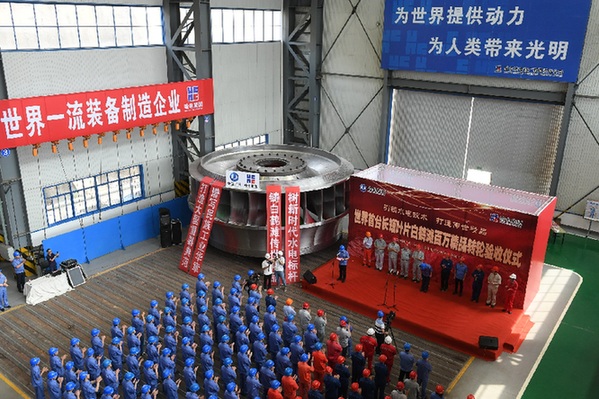 世界首臺(tái)長(zhǎng)短葉片白鶴灘百萬精品轉(zhuǎn)輪順利通過驗(yàn)收。資料照片
