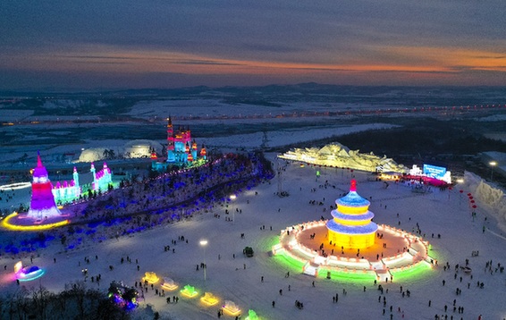 無人機(jī)拍攝的長春冰雪新天地主題冰雪樂園。記者 許暢 攝