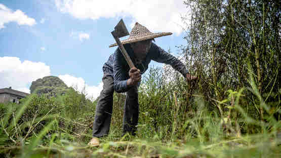 廣西融安縣泗頂鎮(zhèn)馬田村廟鴨屯群眾在收青蒿草。新華社記者 張愛林 攝(2020年8月18日)