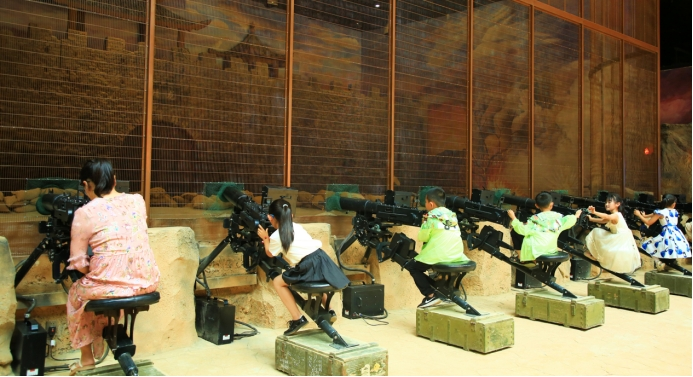 為此,延安紅街打造了大型軍事體驗場館——練兵場。場館以革命歷史題材為創(chuàng)作源泉,通過聲光電等高科技手段打造包括地道戰(zhàn)、蟠龍戰(zhàn)役、實彈射擊、軍事訓(xùn)練場等項目。