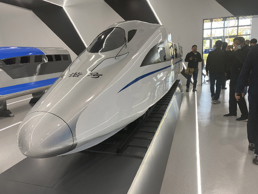 常州軌道交通產(chǎn)業(yè)展示館里的和諧號機車模型。記者 程子龍 攝