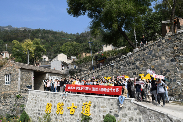 首屆大學生鄉(xiāng)村振興(陽泉)建筑設(shè)計大賽學生代表團在盂縣駱駝古道考察。陽泉市委組織部供圖