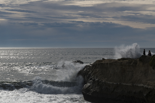 人們?cè)诿绹?guó)加利福尼亞州圣克魯斯觀察巨浪。新華社/美聯(lián)