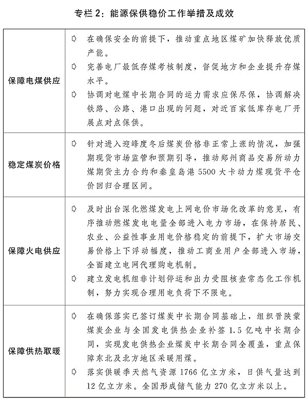 同時,統(tǒng)籌高效做好煤電油氣運調(diào)節(jié)。充分發(fā)揮煤電油氣運保障工作部際協(xié)調(diào)機制作用,壓實地方政府、部門、企業(yè)責任,堅持先立后破、民生優(yōu)先,確保能源安全供應。增強國內(nèi)資源生產(chǎn)保障能力,加快油氣、礦產(chǎn)等資源勘探開發(fā),鞏固發(fā)展增儲上產(chǎn)良好勢頭。保障電煤供應,加大重點產(chǎn)煤地區(qū)和運力緊張地區(qū)的電煤運輸保障,完善煤炭市場價格形成機制,提升電力保障能力,確保穩(wěn)定可靠充足供應,完善新能源上網(wǎng)電價機制,提高天然氣氣源保障水平。有序推進能源結(jié)構(gòu)調(diào)整優(yōu)化。實施全面節(jié)約戰(zhàn)略,加強精細化用能管理,確保民生和公共用能需求,推動能效低于基準水平的重點行業(yè)企業(yè)有序?qū)嵤└脑焐?,推動全社會加強?jié)約用電用能。完善國家戰(zhàn)略物資儲備制度。