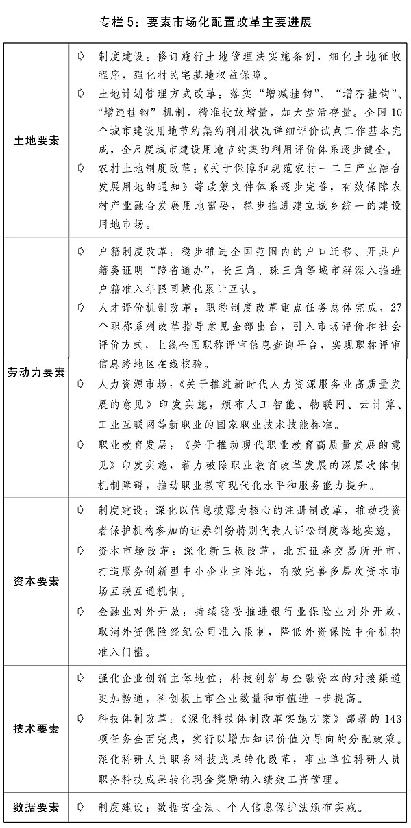 一是要素市場化配置體制機制繼續(xù)完善。完善市場體系基礎制度,出臺實施要素市場化配置綜合改革試點總體方案,市場準入負面清單制度改革持續(xù)深化。建設高標準市場體系行動方案落地實施,全國統(tǒng)一大市場建設穩(wěn)步進行。招標投標領(lǐng)域優(yōu)化營商環(huán)境長效機制逐步健全,企業(yè)在招標投標、政府采購等方面存在的差別化待遇進一步消除,公共資源交易平臺整合共享深入推進,交易平臺服務行為進一步規(guī)范,交易平臺區(qū)域一體化合作扎實開展。