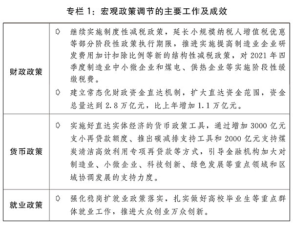 (二)創(chuàng)新和完善宏觀調(diào)控,經(jīng)濟基本盤進一步鞏固。加快構(gòu)建新發(fā)展格局,加強宏觀政策跨周期調(diào)節(jié),做好保供穩(wěn)價工作,加大助企紓困力度,實現(xiàn)了較高增長和較低通脹的優(yōu)化組合,經(jīng)濟保持較好發(fā)展態(tài)勢。