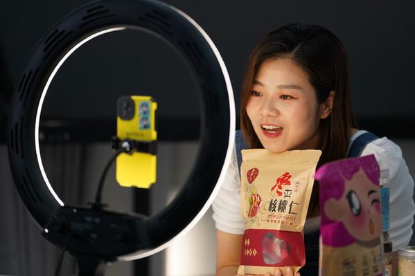 5月12日,殘疾人網(wǎng)絡主播渭梅女在西安一家直播產(chǎn)業(yè)基地直播帶貨。