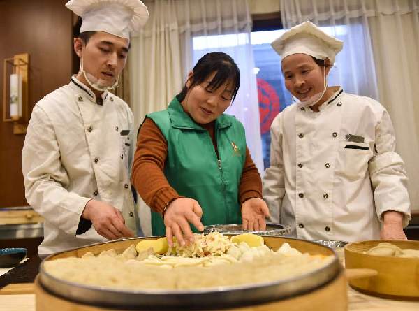 山西省呂梁市嵐縣的學(xué)員學(xué)習(xí)制作“土豆宴大豐收”。本報(bào)記者 柴婷 攝