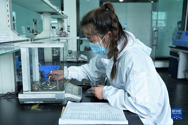 正值秋季生產(chǎn)期,位于湟源縣的青海凱金新能源材料有限公司產(chǎn)品檢測中心實驗室內(nèi),工作人員正在對生產(chǎn)出的新一批負極材料品質(zhì)進行測試。