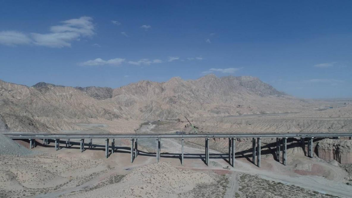 據(jù)了解,項目全線處于中國四大無人區(qū)中的兩大無人區(qū)之中——阿爾金山無人區(qū)和羅布泊無人區(qū),施工沿線資源匱乏,自然環(huán)境惡劣,交通通行不便。建設(shè)團(tuán)隊克服高海拔、高寒、地形地質(zhì)條件復(fù)雜等諸多難題,比原定計劃提前8個月完工。