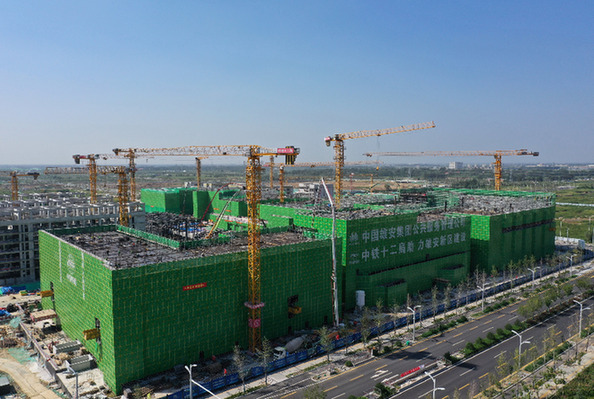 雄安創(chuàng)新研究院科技園項(xiàng)目建設(shè)現(xiàn)場(chǎng)(9月1日攝,無人機(jī)照片)。新華社記者 朱旭東 攝