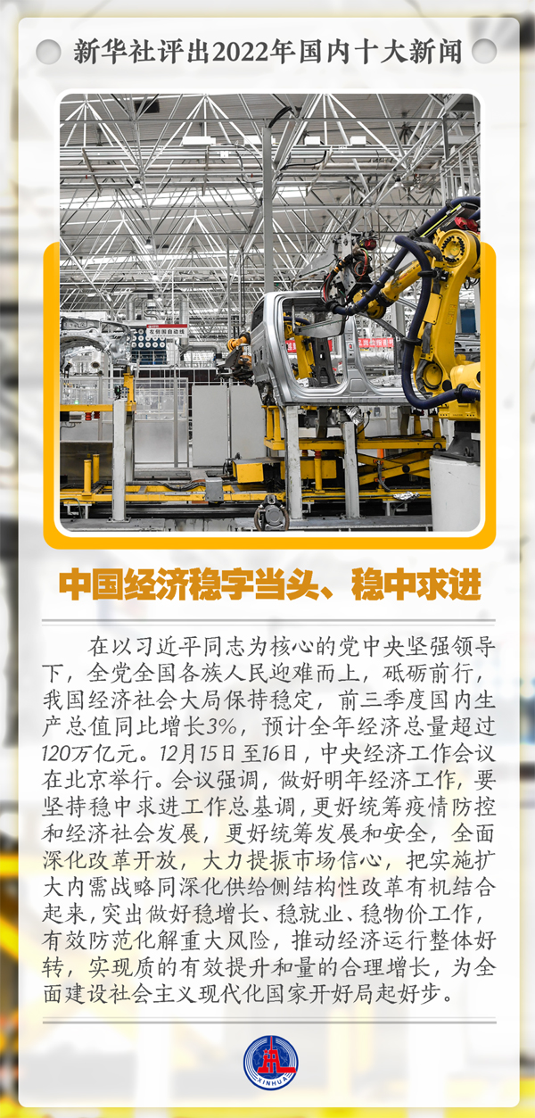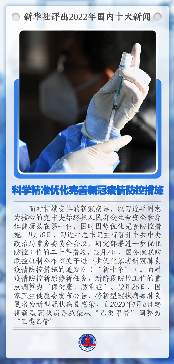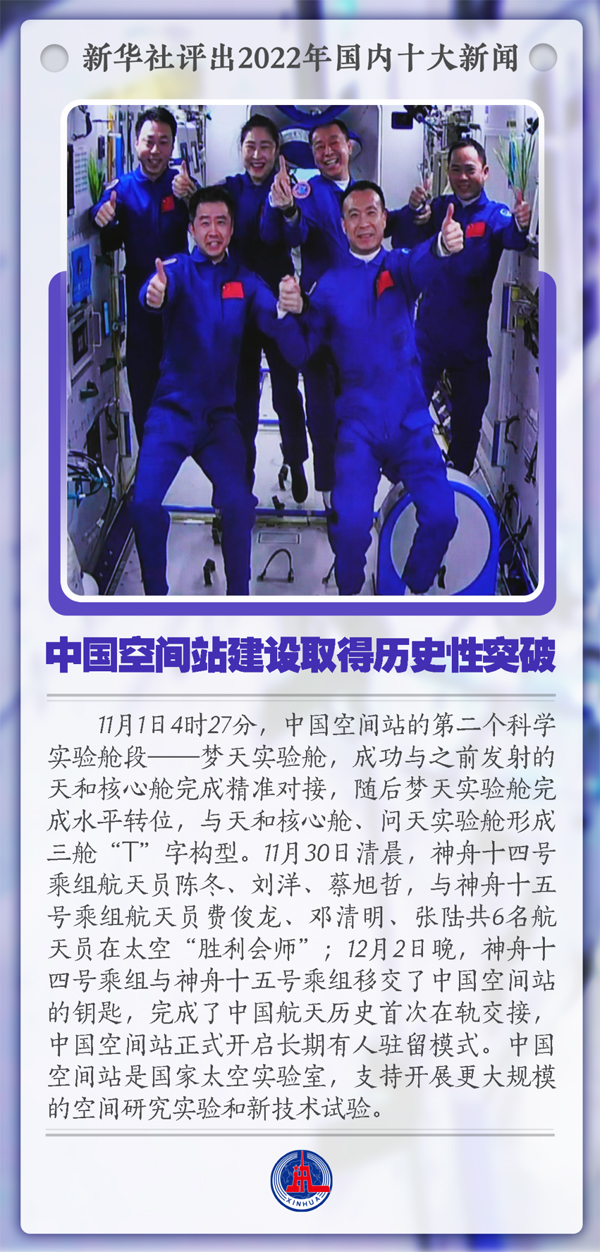 ? 新華社北京12月29日電 新華社評(píng)出2022年國(guó)內(nèi)十大新聞(按事件發(fā)生時(shí)間先后為序)