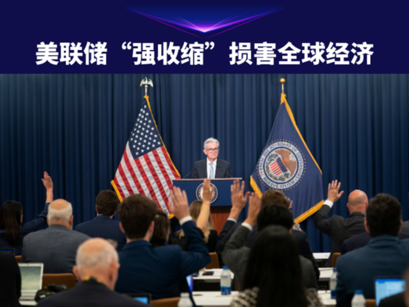 3月16日,美聯(lián)儲為緩解高通脹宣布加息25個(gè)基點(diǎn),開啟新一輪加息周期。這一年,美聯(lián)儲連續(xù)7次累計(jì)加息425個(gè)基點(diǎn)。這一“強(qiáng)收縮”導(dǎo)致多國貨幣匯率跌至歷史低點(diǎn),輸入性通脹壓力陡增,債務(wù)違約風(fēng)險(xiǎn)上升,金融市場劇烈震蕩。美國收緊流動(dòng)性,拉升美元匯率,向外轉(zhuǎn)嫁危機(jī),致使全球金融環(huán)境收緊,世界經(jīng)濟(jì)增長放緩,對新興市場和發(fā)展中國家,尤其是對欠發(fā)達(dá)國家經(jīng)濟(jì)造成損害。