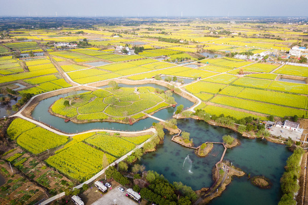 3月17日拍攝的油菜花節(jié)核心景區(qū)(無人機(jī)照片)。湖北省沙洋縣常年種植油菜面積70余萬畝,當(dāng)?shù)赜筒嘶êI钍苡慰拖矏邸?023年3月以來,在沙洋縣油菜花節(jié)核心景區(qū)曾集鎮(zhèn)張池村等地,游客成群結(jié)隊(duì),在金黃色的田野中徜徉,感受美好春光。近年來,沙洋縣將油菜產(chǎn)業(yè)與文旅產(chǎn)業(yè)深度融合,通過賞花經(jīng)濟(jì)帶動(dòng)鄉(xiāng)村餐飲、民宿等產(chǎn)業(yè)發(fā)展,助力鄉(xiāng)村振興。