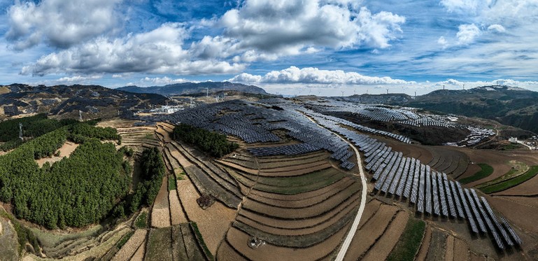 這是3月20日拍攝的云南省巧家縣海壩光伏電站(無人機(jī)照片)。金沙江下游風(fēng)光水儲一體化國家級示范基地位于金沙江下游干熱河谷地段,主要依靠當(dāng)?shù)厮婇_發(fā)項目統(tǒng)籌建設(shè)風(fēng)能、太陽能電站。目前,云南省巧家縣海壩、小羊窩等光伏項目已投產(chǎn)發(fā)電。