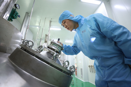寧夏恒康科技有限公司員工正在對鹽酸二甲雙胍生產(chǎn)設(shè)備結(jié)晶釜進(jìn)行檢查?!⌒氯A社記者 呂澤 攝