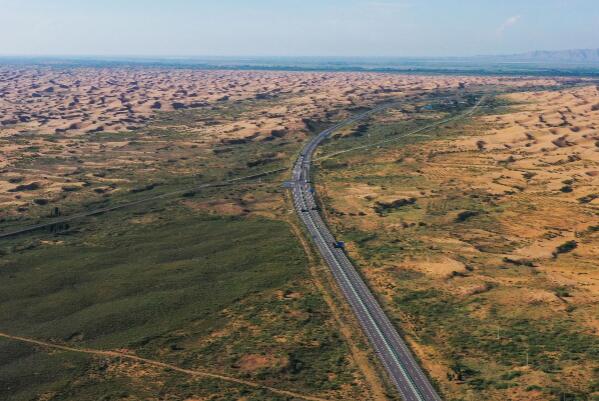 夏日時節(jié),內(nèi)蒙古自治區(qū)杭錦旗境內(nèi)的穿沙公路綠意盎然,綠色沿著道路前行,并向兩旁的沙地鋪展,猶如一條條“綠色動脈”在庫布其沙漠中綿延。穿沙公路不僅給昔日被沙漠阻隔而出行無路的農(nóng)牧民帶來便利,也為實施國家防沙治沙重點工程、企業(yè)產(chǎn)業(yè)化投資治理庫布其沙漠打下了堅實的基礎。
