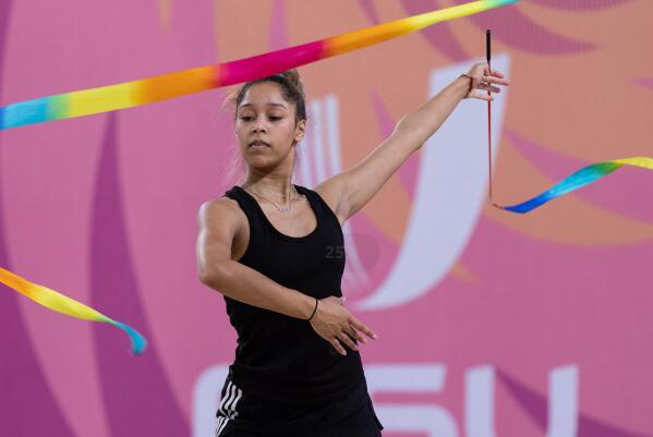 第31屆世界大學(xué)生夏季運(yùn)動(dòng)會(huì)將于7月28日開(kāi)幕,隨著賽事的臨近,各代表團(tuán)選手來(lái)到各個(gè)項(xiàng)目的訓(xùn)練場(chǎng)地,加緊適應(yīng)性訓(xùn)練。圖為7月25日,南非大學(xué)生藝術(shù)體操隊(duì)的選手在成都體育學(xué)院體操館訓(xùn)練。