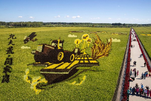 游客在北大荒集團閆家崗農(nóng)場有限公司農(nóng)業(yè)現(xiàn)代化示范區(qū)游覽。