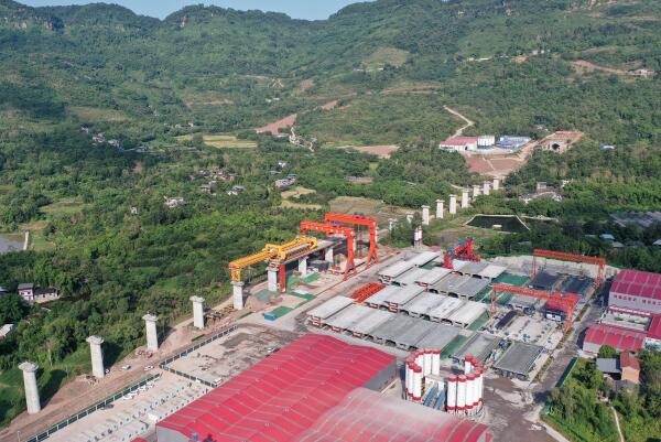 8月15日,在中鐵十一局集團(tuán)承建的渝湘高鐵重慶段建設(shè)現(xiàn)場(chǎng),隨著作業(yè)人員將首榀重790.25噸的大型箱梁精準(zhǔn)架設(shè)在箭桿灣雙線(xiàn)特大橋19號(hào)至20號(hào)橋墩上,標(biāo)志著渝湘高鐵重慶段箱梁架設(shè)全面展開(kāi)。渝湘高鐵重慶至黔江段是國(guó)家中長(zhǎng)期鐵路網(wǎng)規(guī)劃“八縱八橫”中廈渝通道的重要組成部分,正線(xiàn)全長(zhǎng)269.521公里,設(shè)計(jì)時(shí)速350公里。新華社記者 唐奕 攝