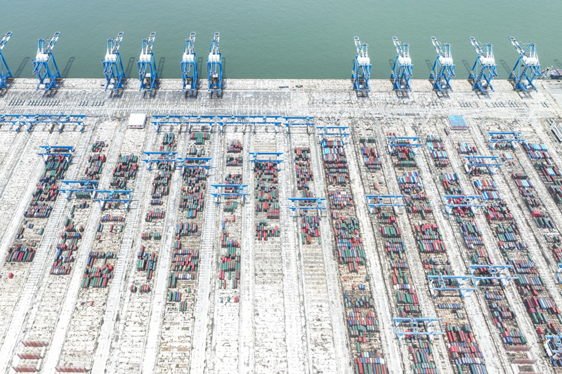 北部灣港欽州自動化集裝箱碼頭(無人機(jī)照片)。記者 曹祎銘 攝