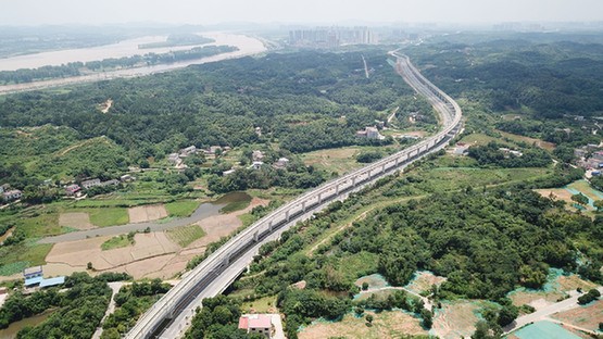 2023年6月28日,長(zhǎng)株潭城際軌道交通西環(huán)線一期工程開(kāi)通運(yùn)營(yíng)。這是湖南省首條跨市城市軌道交通線路,開(kāi)通后長(zhǎng)沙和湘潭之間的通勤時(shí)間縮短至20分鐘左右,極大方便了兩市市民跨市出行。圖為當(dāng)日拍攝的長(zhǎng)株潭城際軌道交通西環(huán)線一期工程的高架軌道(無(wú)人機(jī)照片)。記者 陳澤國(guó) 攝