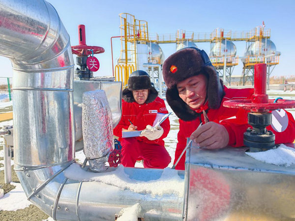 “低溫天氣里,儀表可能凍堵造成失靈或高壓,咱們要隨時觀察數(shù)據(jù)變動,及時調整參數(shù)。”侯玉偉的睫毛和眉毛上掛滿冰霜,不時對著凍僵的手哈口熱氣。