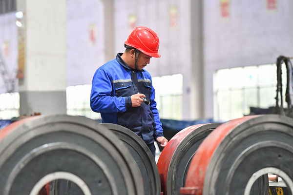 總裝車間里,車間主任尤曉輝拿著手電筒檢查多級(jí)泵中段構(gòu)件的表面平整度。400公斤的中段有1米多高,兩個(gè)密封面之間要嚴(yán)絲合縫,以確保產(chǎn)品的穩(wěn)定性、可靠性。“春節(jié)后有10多臺(tái)多級(jí)泵需要交付,我們得抓緊時(shí)間完成裝配。”尤曉輝說(shuō)。