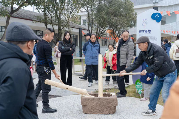 隨著朝陽(yáng)慢慢升起,一陣歡聲笑語(yǔ)從楠木橋村山頂傳來(lái)。在當(dāng)?shù)刈钚麓蛟斓脑贫藚擦盅袑W(xué)基地,不少家長(zhǎng)帶著孩子們學(xué)唱苗歌、體驗(yàn)打糍粑、觀賞舞龍舞獅等苗族春節(jié)習(xí)俗。