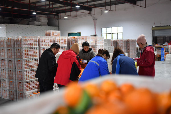 麻陽(yáng)楠木橋水果專業(yè)合作社工人在分揀橙子。記者 陳振海 攝