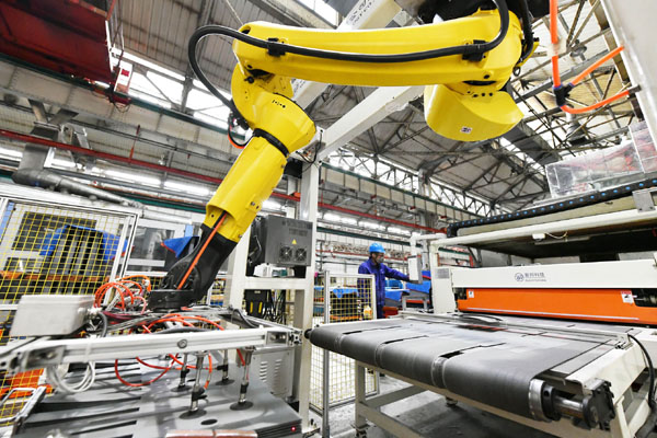 圖為在哈電集團(tuán)哈爾濱電機(jī)廠有限責(zé)任公司生產(chǎn)車間,工作人員在操控自動(dòng)涂漆線機(jī)械手智能化改造項(xiàng)目的智能設(shè)備。新華社記者 王建威 攝
