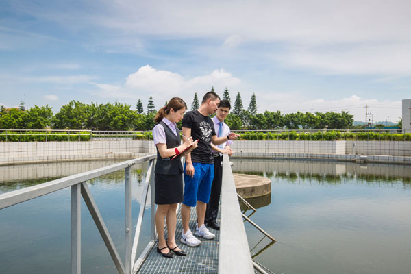 農(nóng)行廣東分行員工實(shí)地調(diào)研梅湖水質(zhì)凈化中心污水處理項(xiàng)目。資料照片
