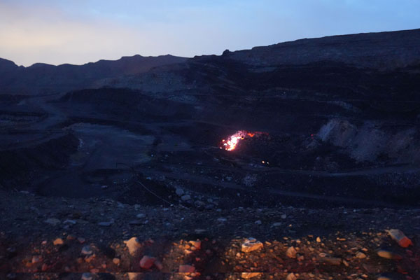近日,記者來到位于賀蘭山腹地的汝箕溝礦區(qū)中槽、紅梁西火區(qū),站在數(shù)百米外,刺鼻的氣味撲面而來,大約數(shù)十平方米的區(qū)域內(nèi),紅色火焰在夜間清晰可見。第二天一早,記者在中槽火區(qū)附近看到,厚幾十米、長達幾千米的煤層自燃后呈灰白色,煤層燒空后還引發(fā)了山體滑坡。