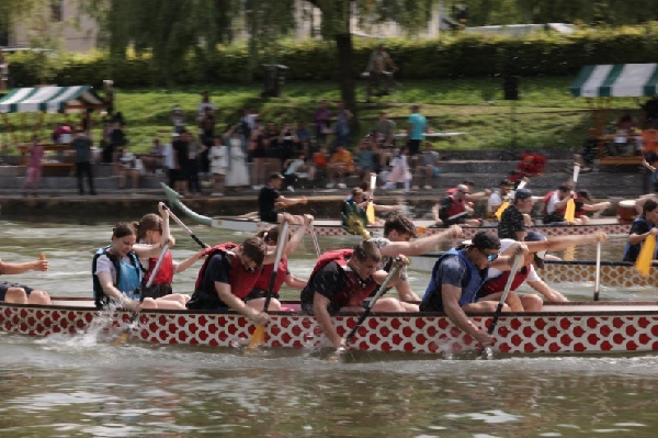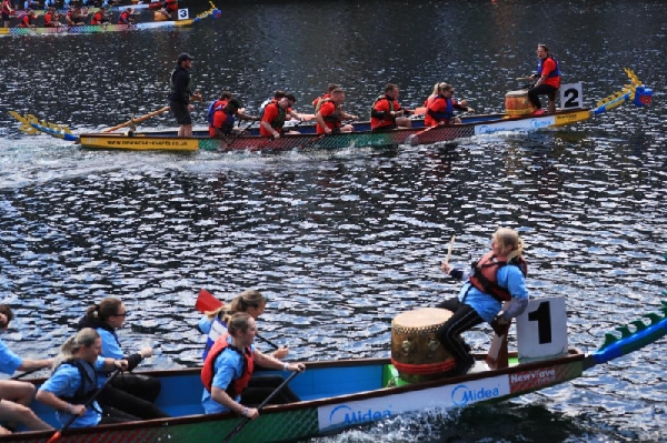 在英國,第十屆全英中華端午龍舟會8日和9日在大曼徹斯特地區(qū)索爾福德市勞瑞碼頭水上運(yùn)動中心舉行。今年比賽的最大亮點是曼城和曼聯(lián)兩只足球俱樂部把他們著名的曼徹斯特“德比”從足球場帶到了龍舟賽道上。