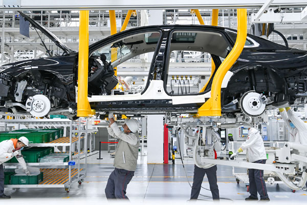 ——搶抓機遇,助力“汽車城”駛入新能源汽車產(chǎn)業(yè)快車道。東風大街上,“第一汽車制造廠奠基紀念”漢白玉基石巍然矗立,廠區(qū)的紅墻保留著建廠時的風貌。而走入一汽紅旗繁榮工廠的廠門,取代“懷舊風”的,是一派現(xiàn)代化圖景:車間寬敞明亮,無人小車穿梭其間,靈活避障,自動機械臂手舞足蹈,緊張忙碌,工人操作聚精會神,有條不紊。