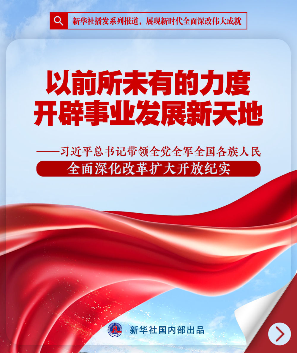 ??6月25日至7月2日,新華社推出系列報道,全景記錄習近平總書記帶領全黨全軍全國各族人民全面深化改革擴大開放的偉大歷程,深刻闡釋黨的十八屆三中全會以來我國全面深化改革取得的歷史性成就,生動講述全面深化改革動人故事。
