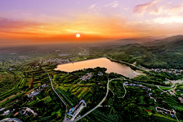 晨曦中的周至縣周塬路和駱峪水庫(kù)。受訪者供圖