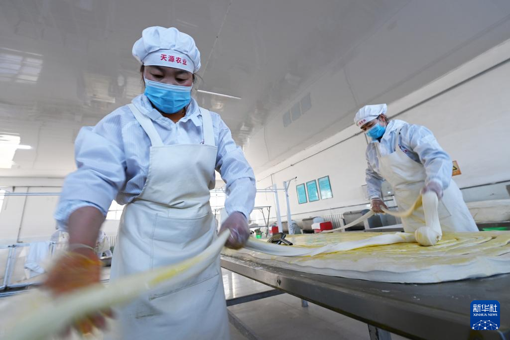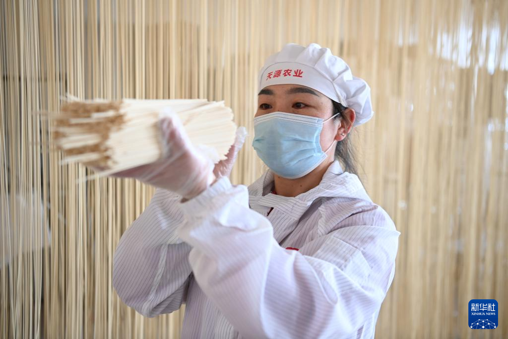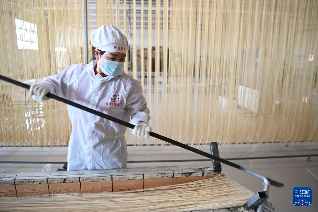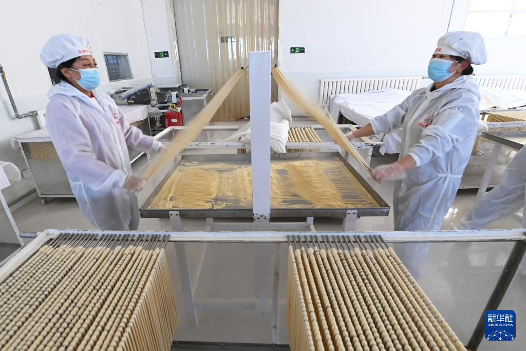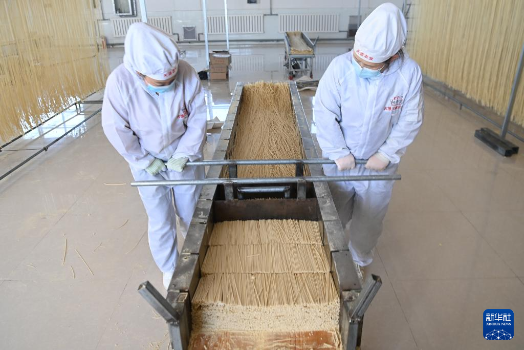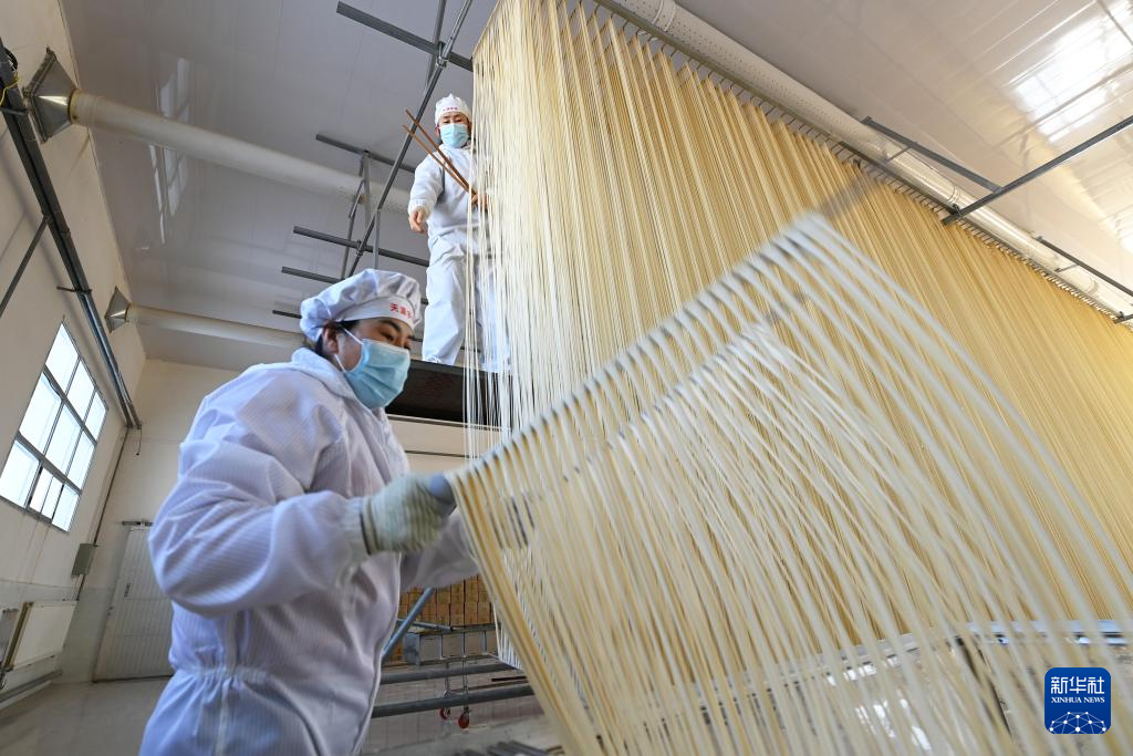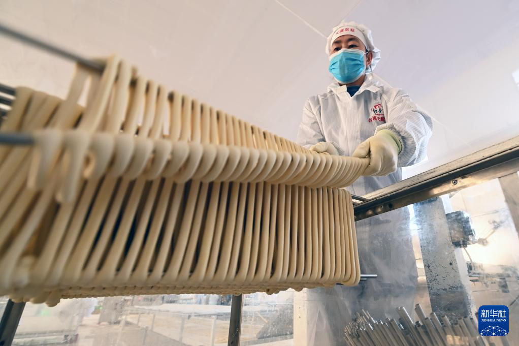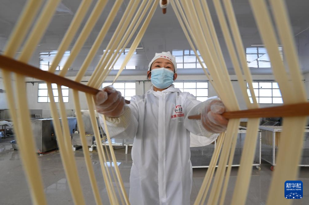 春節(jié)臨近,在甘肅省武威市古浪縣,“非遺”產(chǎn)品——古浪手工掛面訂單大增,當(dāng)?shù)匾恍┢髽I(yè)的掛面生產(chǎn)車間內(nèi),工人們抓緊制作手工掛面。古浪手工掛面歷史悠久,以國(guó)家農(nóng)產(chǎn)品地理標(biāo)志產(chǎn)品古浪紅光頭小麥面粉為原料,經(jīng)十多道工序加工而成。2024年12月,古浪手工掛面制作技藝被列入甘肅省第五批省級(jí)非物質(zhì)文化遺產(chǎn)代表性項(xiàng)目名錄。