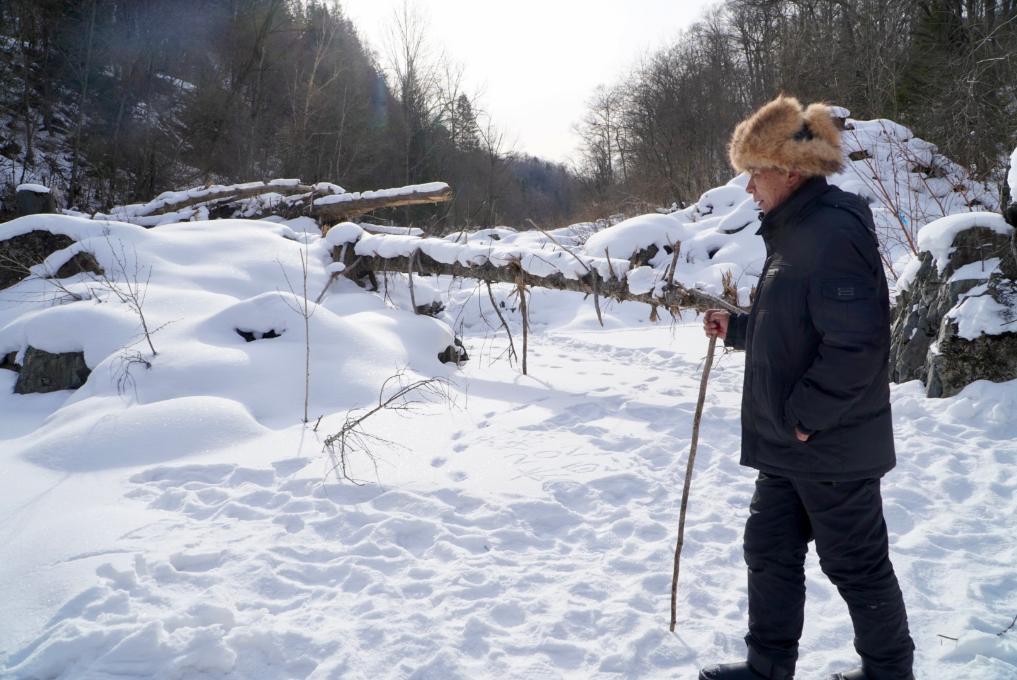 有了文化產(chǎn)品,還得有文化場景。在長白山西坡下的松江河鎮(zhèn),已經(jīng)七十多歲的田守仁帶著一群游客行走在冰凍的松江河上。幾公里的雪地穿越,不僅可以聽到原本只屬于山里人的故事,還能看到水獺、狍子等不少野生動物的腳印、捕食痕跡。