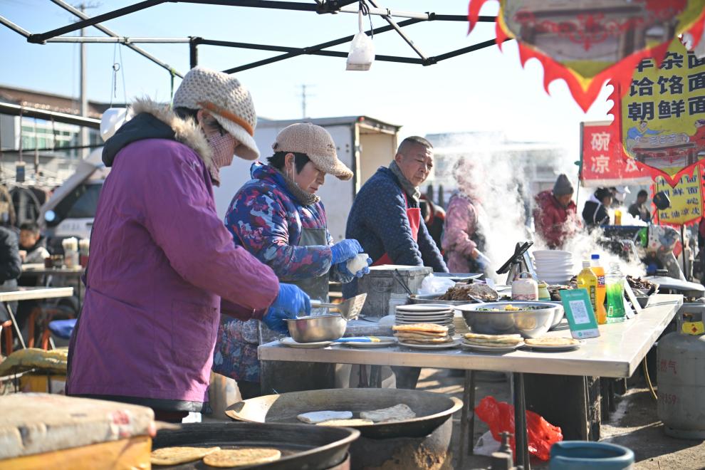 在大集上賣本地特色美食的商販。 新華社記者 孫凡越 攝